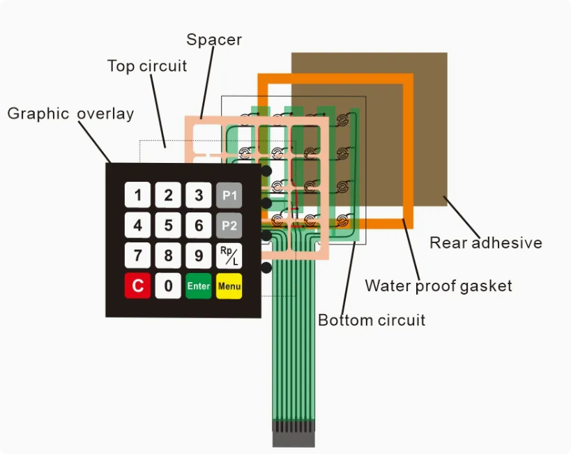Klávesnice s membránovým spínačem, překryvná grafika, štítek, tlakový senzor, silikonová klávesnice a silikonové produkty